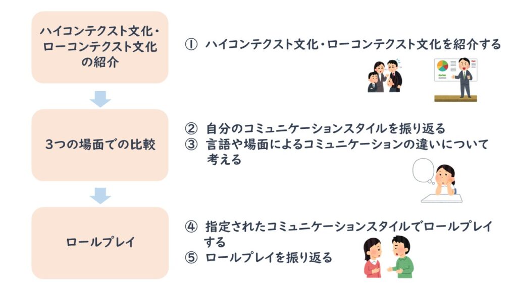 - 【学生】異なるコミュニケーションスタイルを使うことで、どう感じたかを振り返り、話し合います。